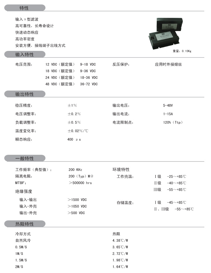 功率:30-100W 輸入電壓:9-18VDC 18-36VDC 36-72VDC 輸出路數(shù):?jiǎn)温?br /> 外形尺寸:98*52*20.5mm 100*65*22.5mm 安裝方式:端子式